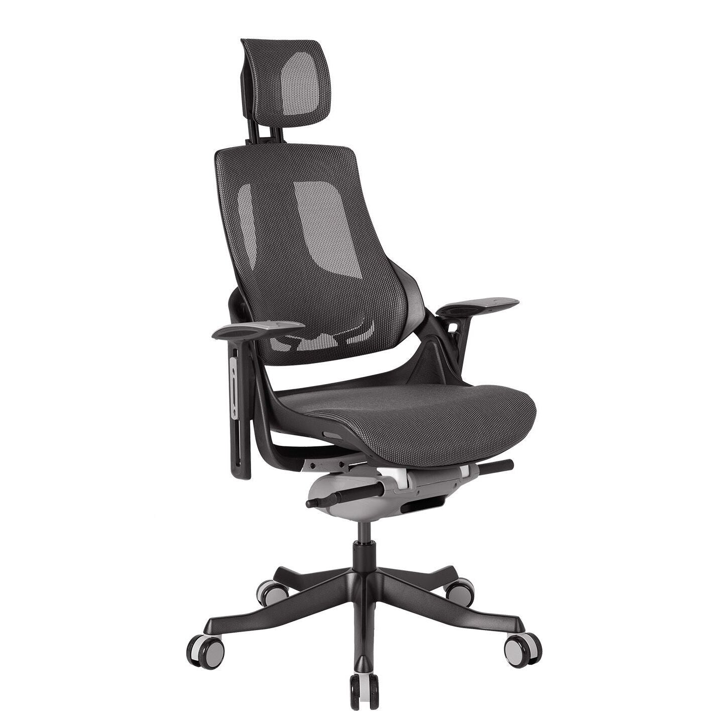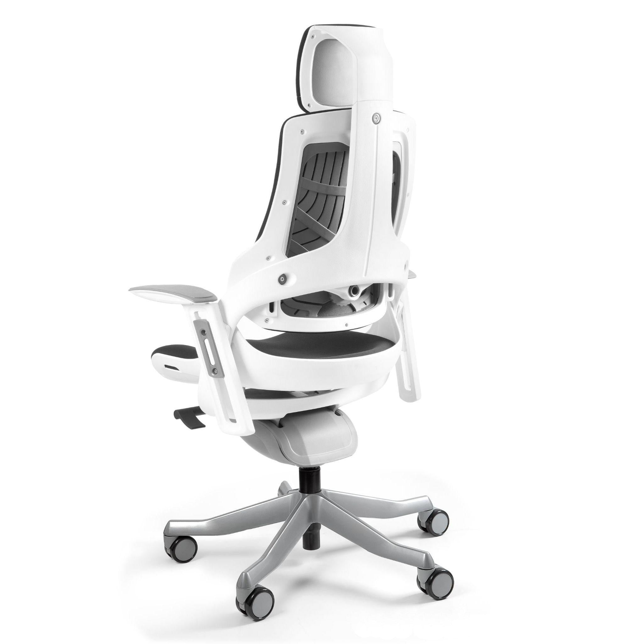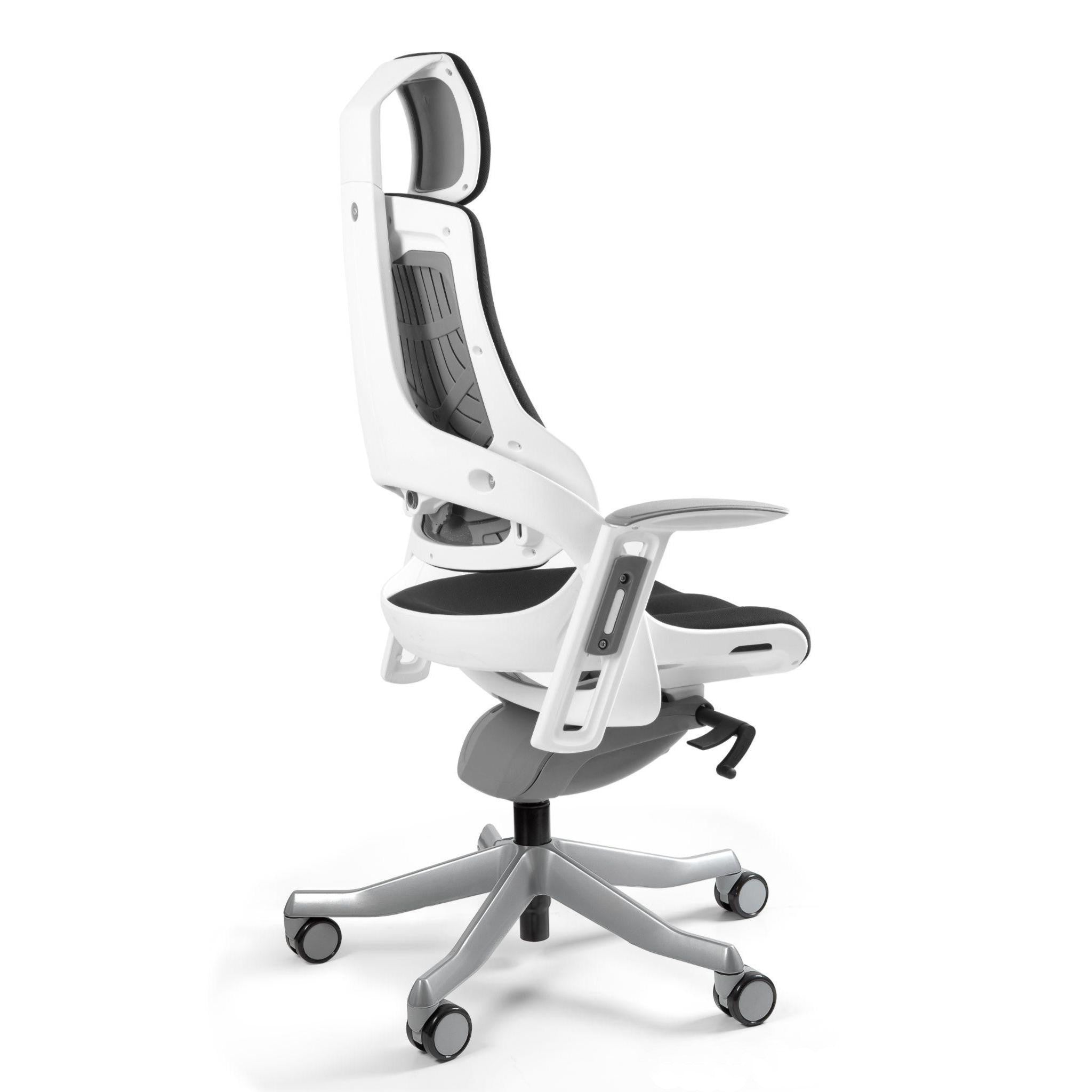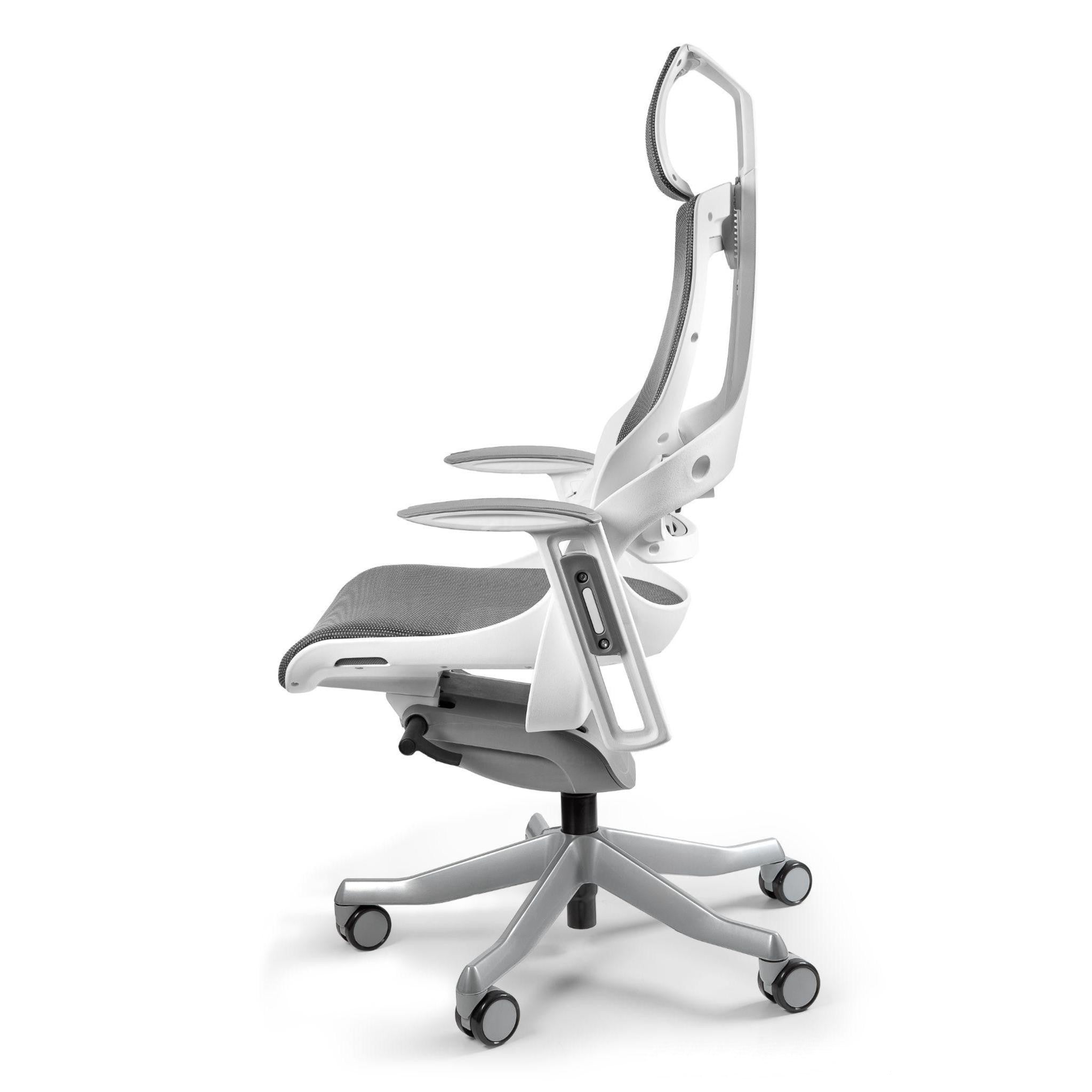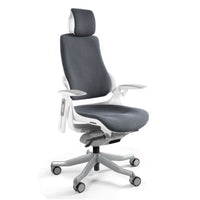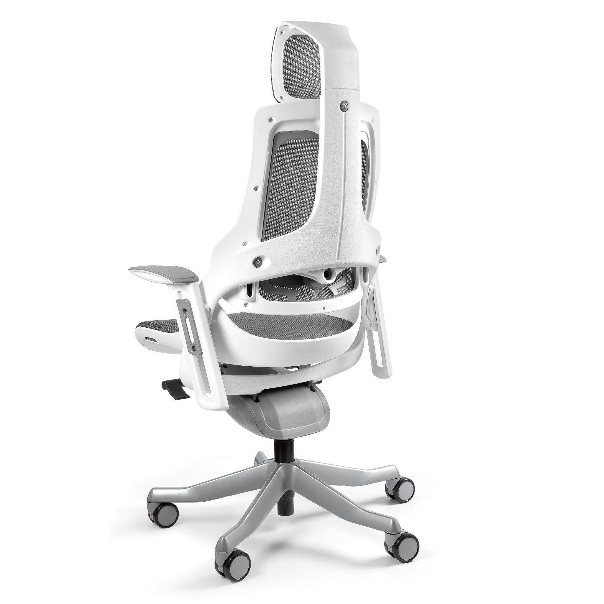 "Wau" tuo sinulle ergonomisten tuolien erinomaisuuden. Sujuva synkroninen mekanismi auttaa lukitsemaan kallistusasennon useisiin asentoihin. Keinun jäykkyys on säädettävissä istuimen painon mukaan. Voit myös säätää selkänojan kaarevuutta ja käsinojien pyörimiskulmaa.